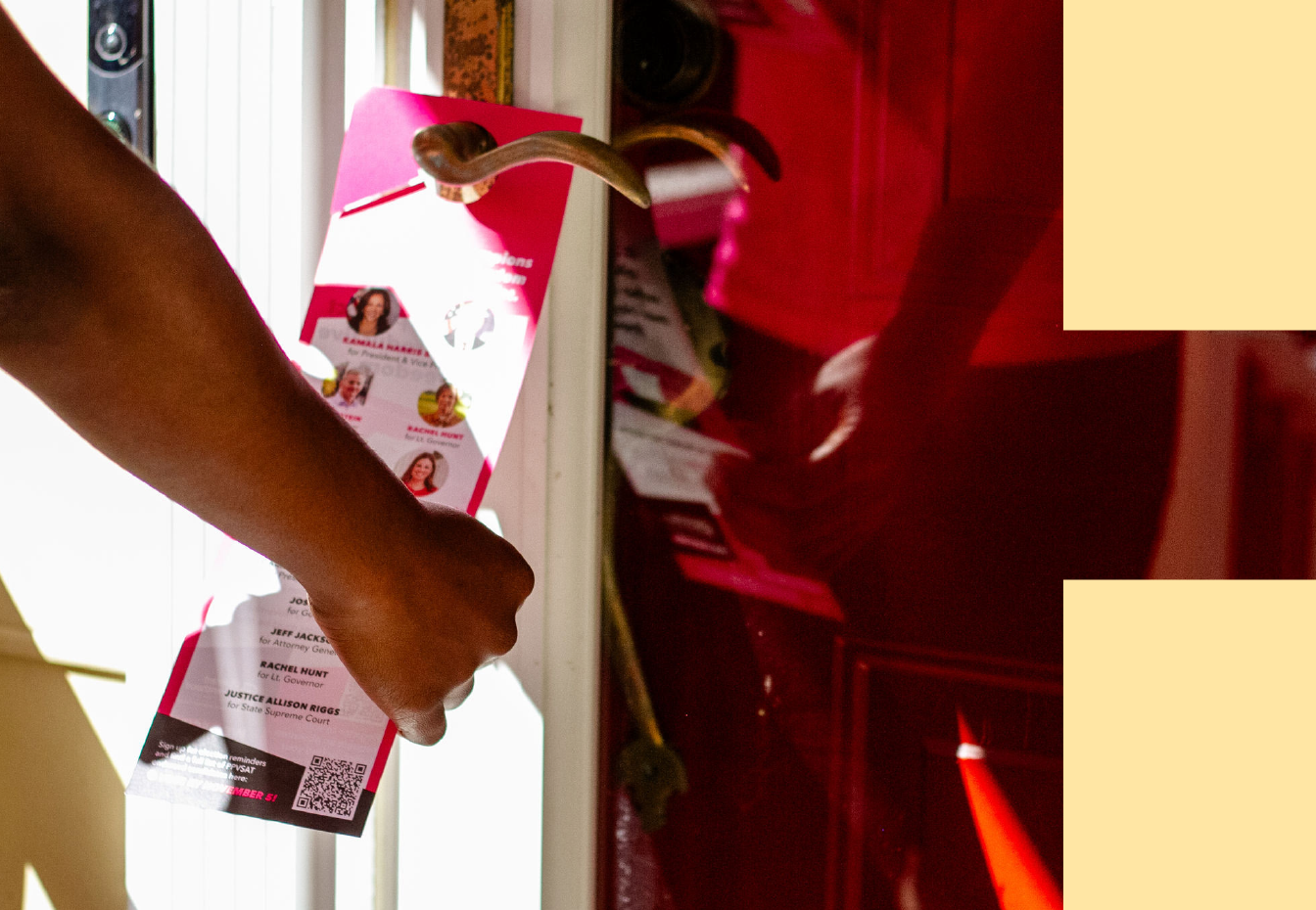 Expand the electorate, move hearts and minds, and turn out your vote across doors, events, polling locations, and targeted calls/texts—often as part of broader grassroots organizing.